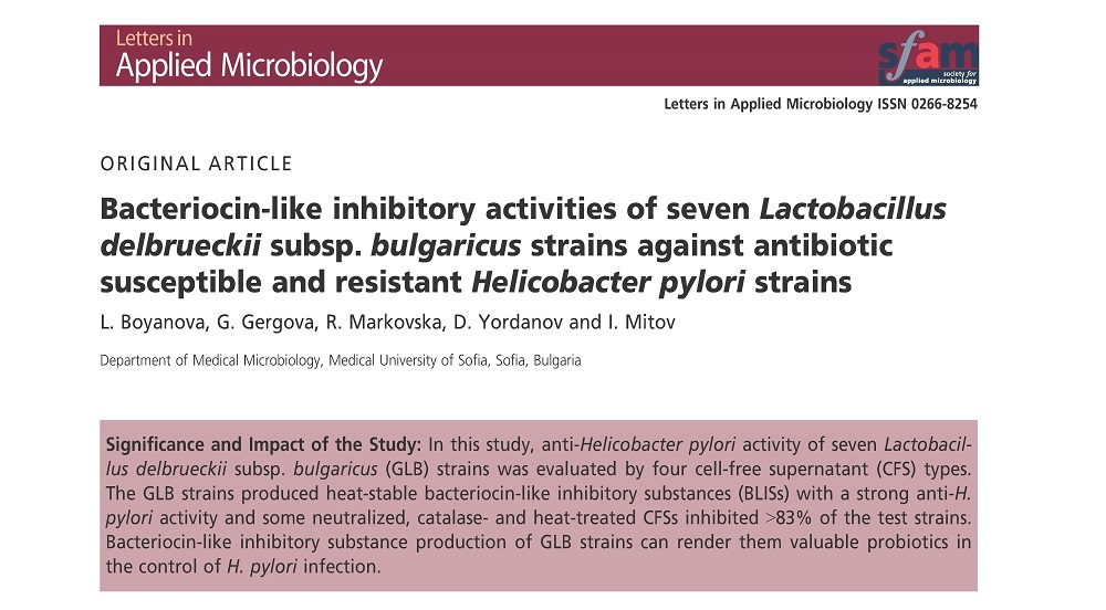 Một nghiên cứu của Khoa Y sinh , trường Đại học Y Sophia (Bulgaria) cho thấy vi khuẩn L. Bulgaricus trong sữa chua truyền thống được xem như nhân tố ức chế vi khuẩn HP gây viêm loét dạ dày. Đặc biệt vi khuẩn HP thường đã kháng kháng sinh nên khó điều trị dứt điểm, bệnh thường tái phát sau một thời gian ngắn nên giải pháp sử dụng vi khuẩn L. Bulgaricus điều trị thay cho kháng sinh đang được các bác sĩ quan tâm.